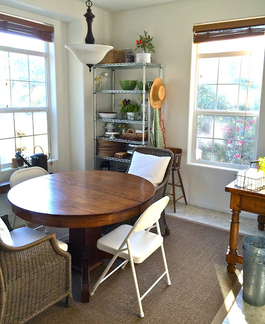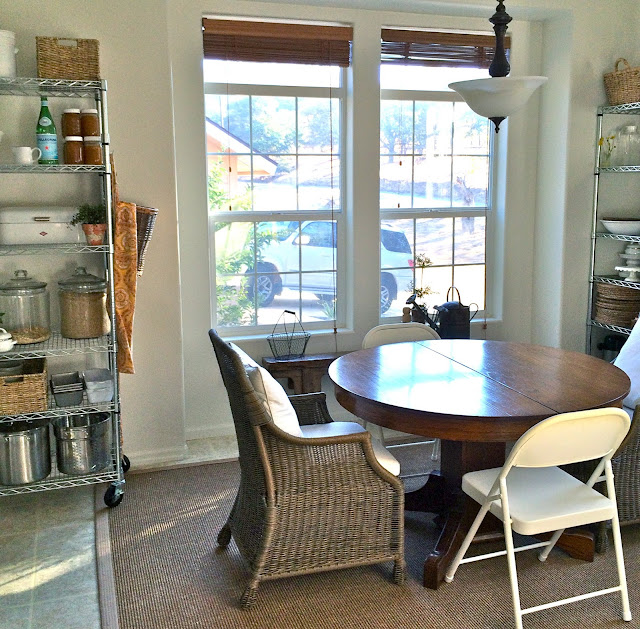 Don't you just love my folding chairs? I know... I'm quite the trend setter! Truth is, we sold the big farmhouse table and chairs. And until I find what I want, these work just fine. I did pick up two wicker chair that I love! Not sure if I'll keep them at the table, but so far I like it.