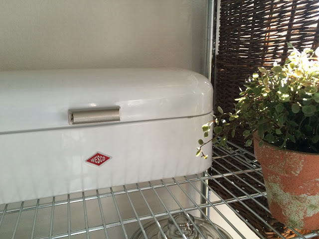 I made one additional purchase that I had research for a LONG time. I invested in a quality bread box. With all the money I made selling the big farmhouse furniture, I was able to splurge a bit without dipping into our monthly budget. This Wesco bread box is a dream! I had debated off and on about buying a vintage granite enamel ware bread box, but my OCD tendency kept kicking in when I thought of storing my bread in a box that I had no clue as to it's prior use. I love my antiques, but a new bread box for me, please.