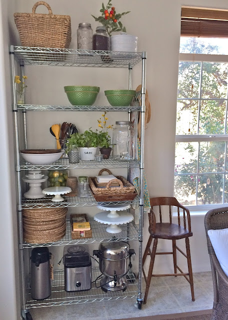 • Second, it's dry here in the southwest and that means dust. More than most of you can ever imagine! It gets EVERYWHERE and FAST! I've thought of Sarah, Abraham's wife many a time and reminded myself that I COULD be living in a tent in the dirt and sand all my life. It helps me stay content with my own dust! Wire shelving collects very little dust. Almost none in fact. I do have to dust the items on it, but it's MUCH easier to manage.